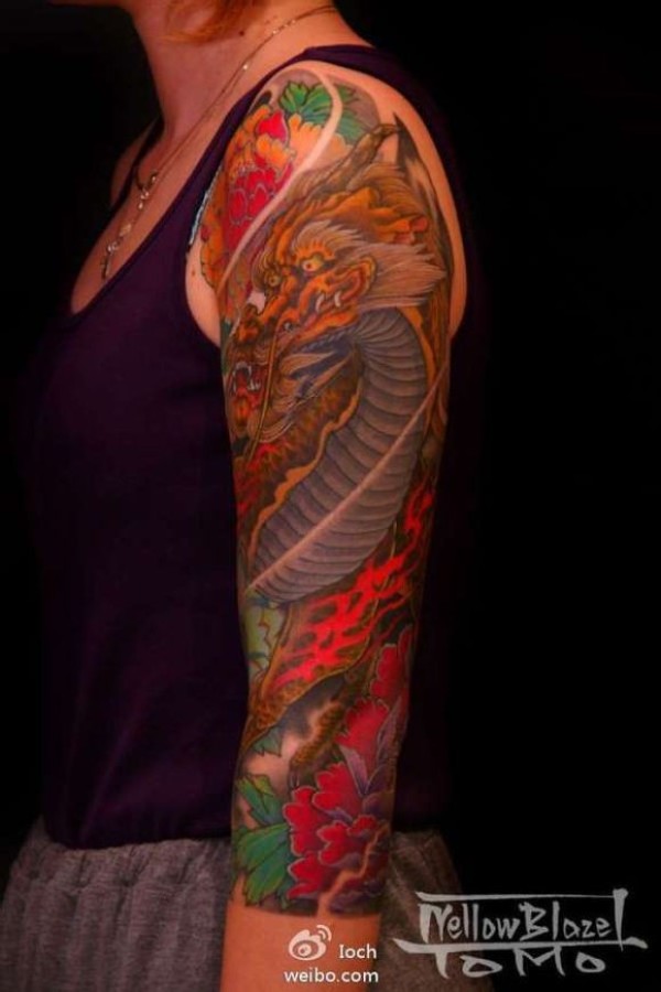 雕智传统的花臂纹身近作