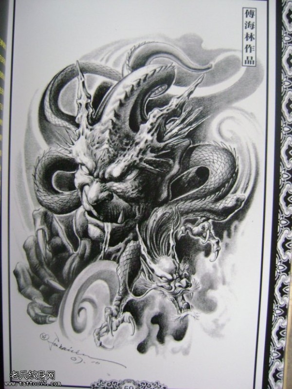 龙纹身手稿_一组老传统黑灰龙手稿纹身图案