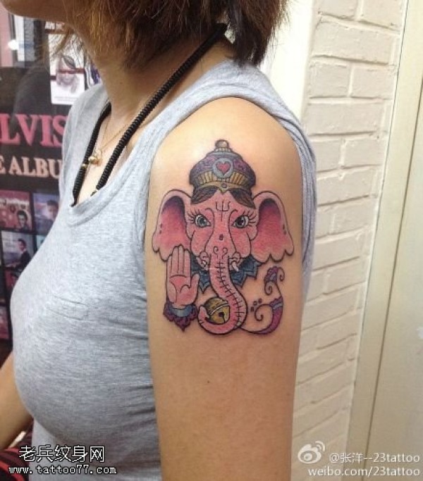 手臂彩色象神纹身图案