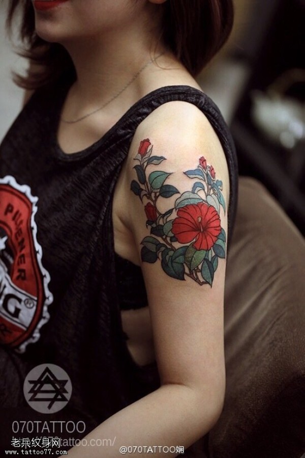 女生肩花纹身_15张女性双肩对称的肩花纹身图案作品图片