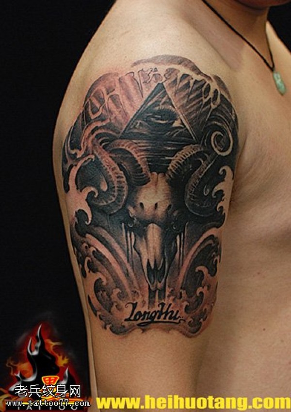 胳膊男士死亡之神羊角纹身图案