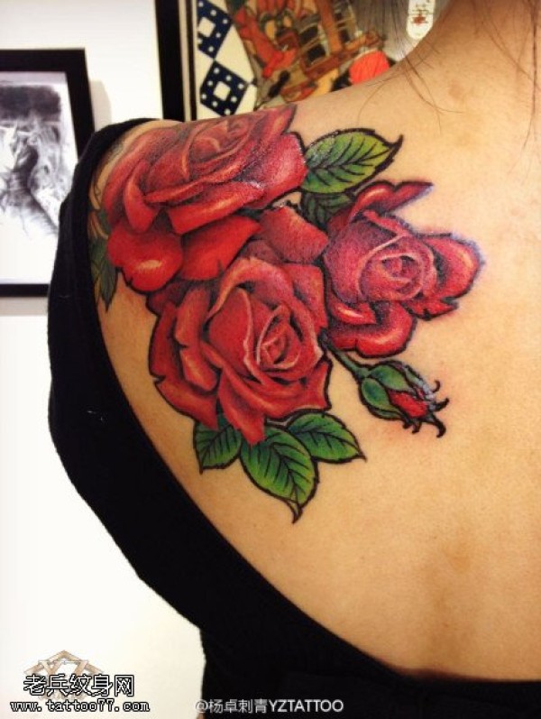 女生肩花纹身_15张女性双肩对称的肩花纹身图案作品图片