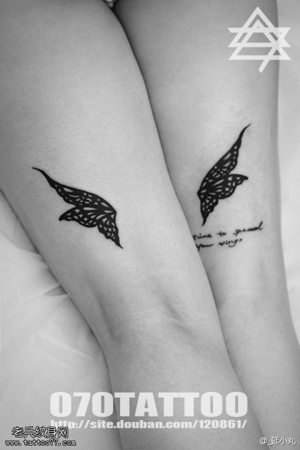 腿部小蝴蝶超简洁纹身图案
