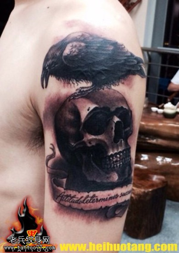 欧美风超cool乌鸦与骷髅纹身图案