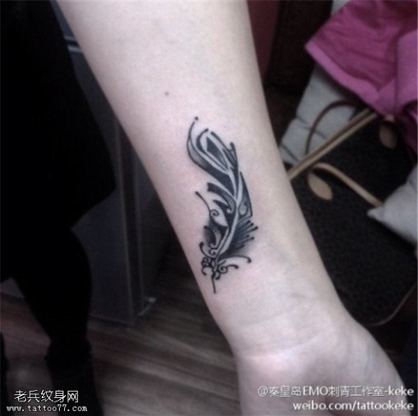 手腕羽毛纹身图案