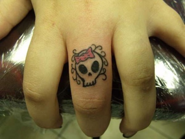 手指上小小的骷髅头纹身