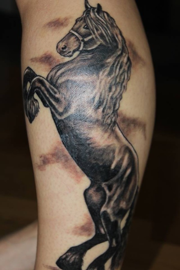 小腿部漂亮大气的马纹身
