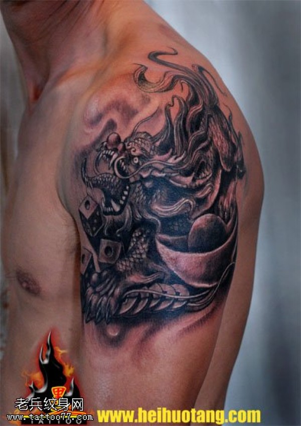 聚宝恶煞酷炫中国风传统大龙纹身图案