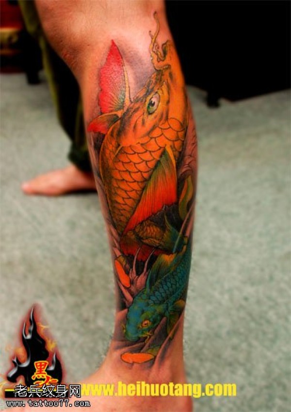 传统鲤鱼花小腿纹身_腿部纹身图案大全_纹身图吧