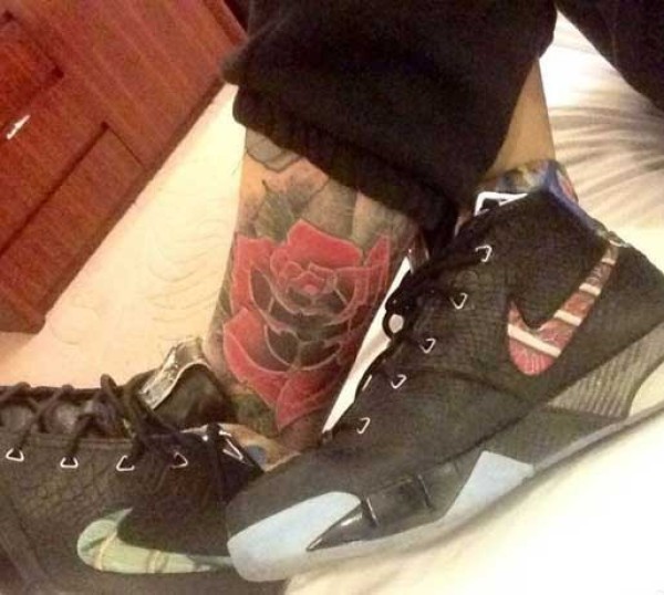 欧豪舞台上大秀小腿马玫瑰纹身图