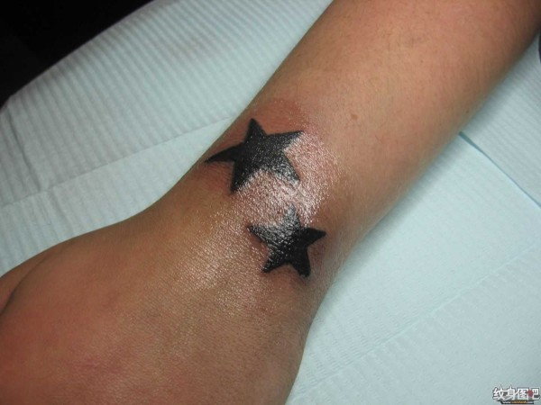手腕上两个黑色的五芒星纹身