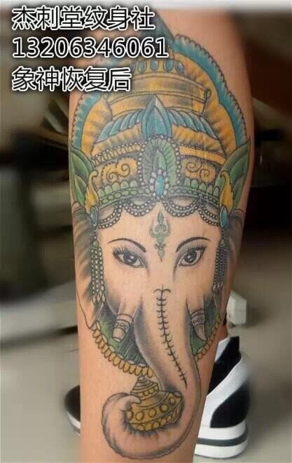 小腿部神秘的象神纹身