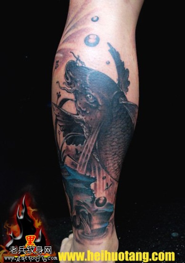 墨色中国风传统鲶鱼纹身图案