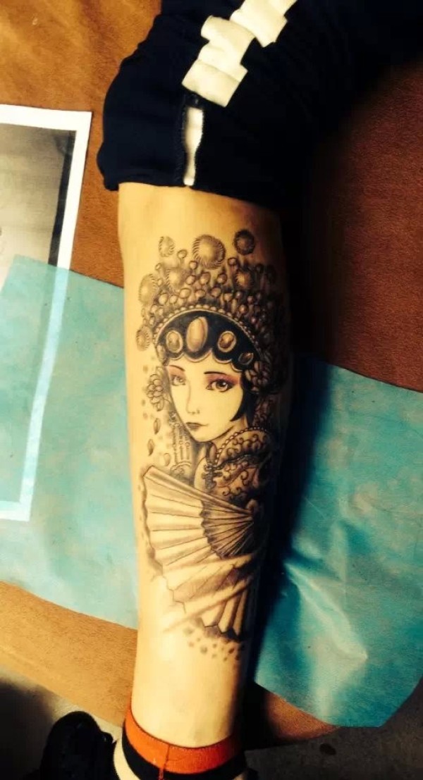 传统花腿纹身--18张传统风格的大花腿纹身图案作品