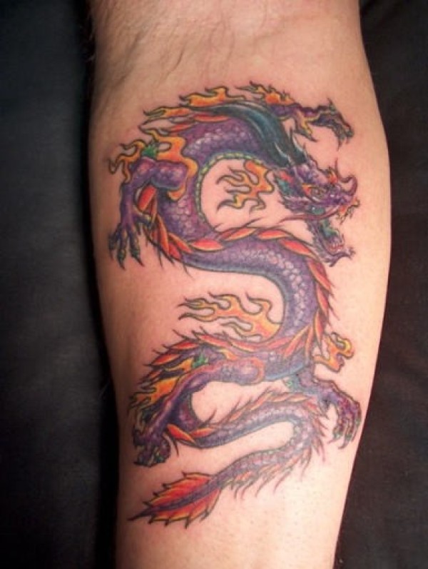 小腿部非常帅气拉风的龙纹身