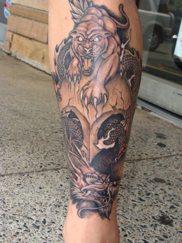 龙纹身手稿_一组老传统黑灰龙手稿纹身图案