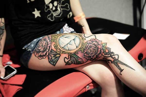 传统花腿纹身--18张传统风格的大花腿纹身图案作品