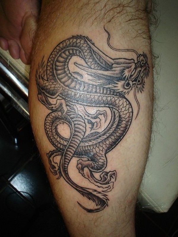 龙纹身手稿_一组老传统黑灰龙手稿纹身图案