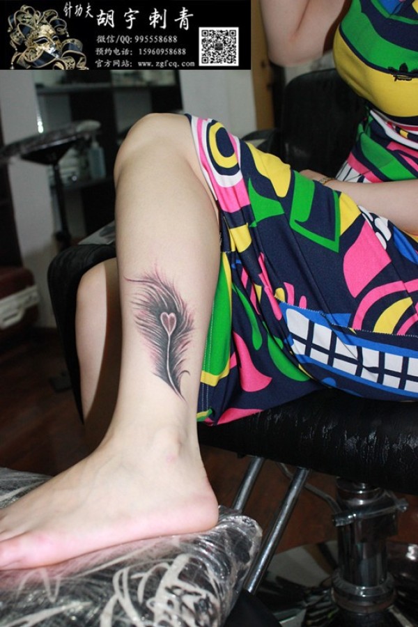 脚踝羽毛文身作品