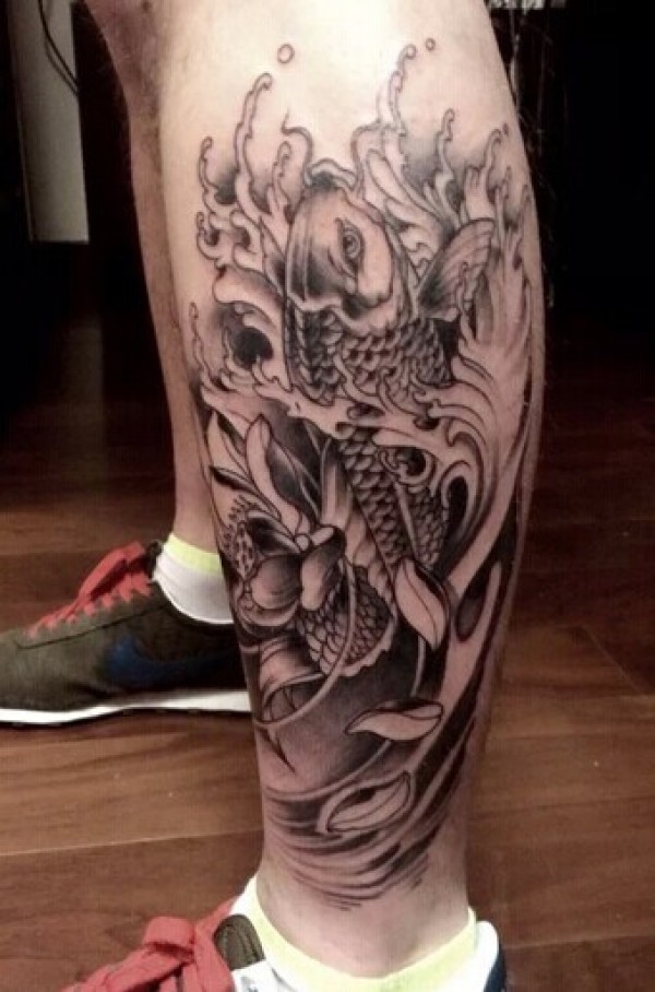 传统鲤鱼花小腿纹身_腿部纹身图案大全_纹身图吧
