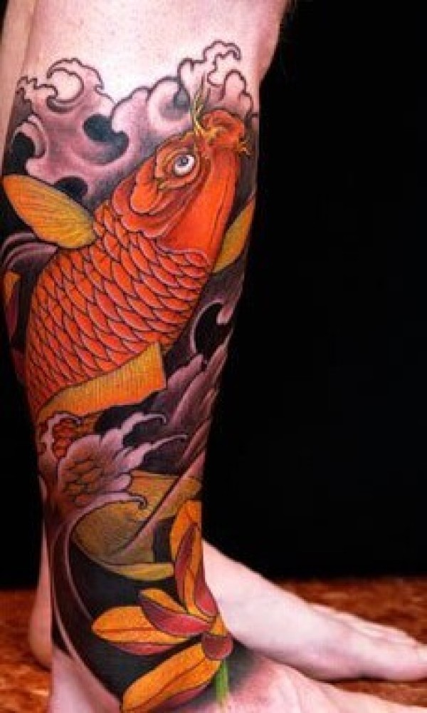 传统鲤鱼花小腿纹身_腿部纹身图案大全_纹身图吧
