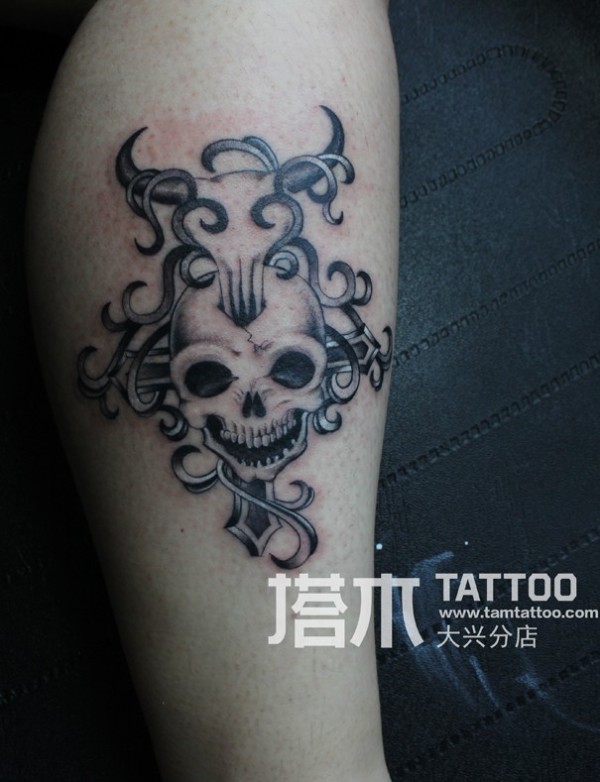 男生小腿死神纹身_腿部纹身图案大全_纹身图吧
