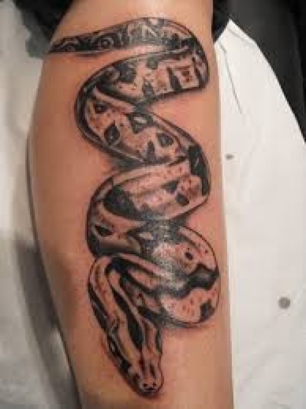 小腿部个性时尚的蛇纹身