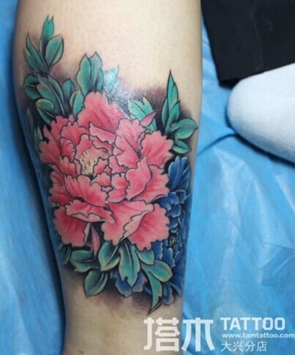 传统鲤鱼花小腿纹身_腿部纹身图案大全_纹身图吧