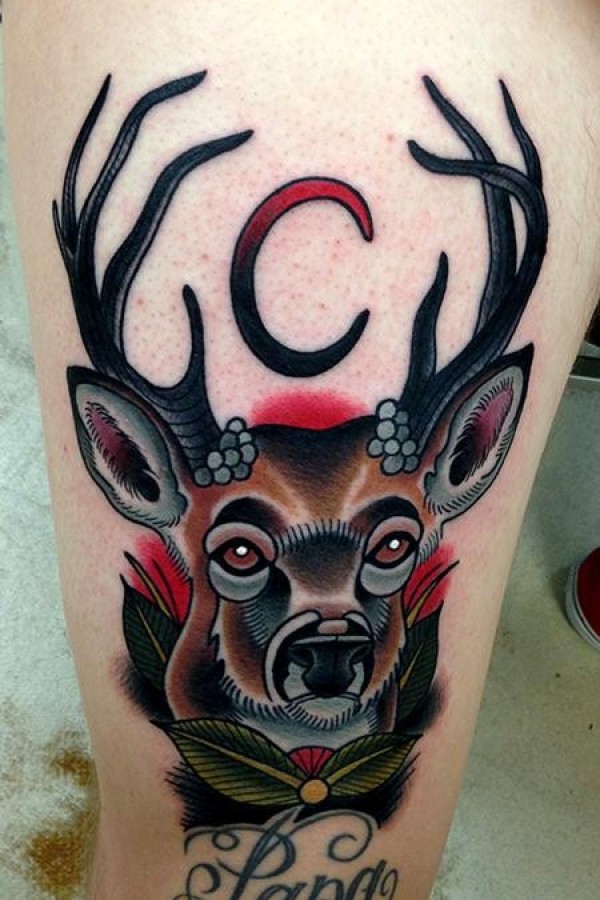 腿部一款经典个性的鹿纹身