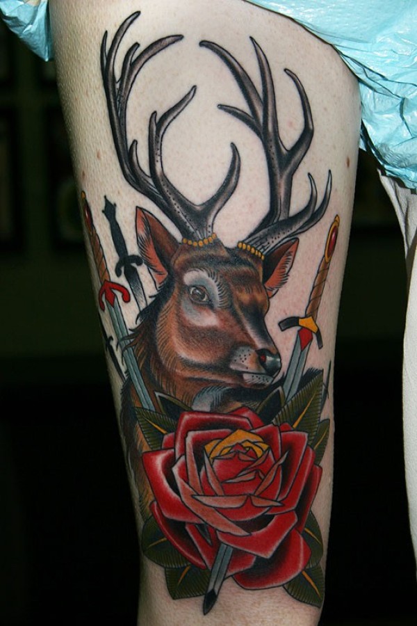 传统花腿纹身--18张传统风格的大花腿纹身图案作品