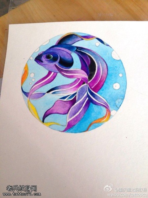 彩色金鱼纹身手稿图案