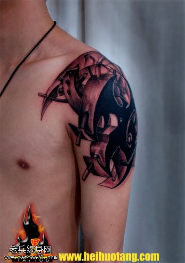 女生肩花纹身_15张女性双肩对称的肩花纹身图案作品图片