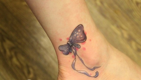 脚踝上漂亮清新的蝴蝶结纹身