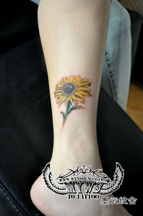 女生脚踝向日葵纹身_脚部纹身图案大全_纹身图吧