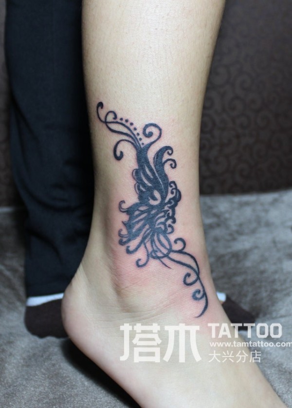 脚踝蝴蝶图腾纹身