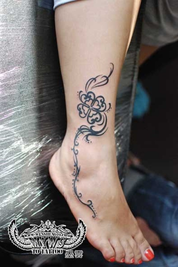 脚踝部简单的四叶草图腾纹身