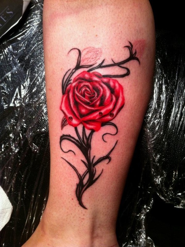脚踝部漂亮的玫瑰纹身