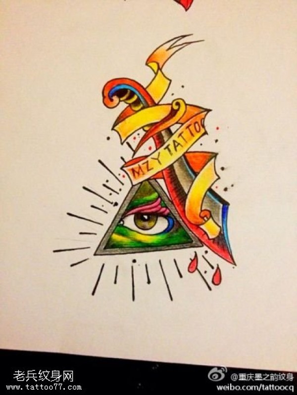 彩色上帝之眼匕首纹身手稿图案