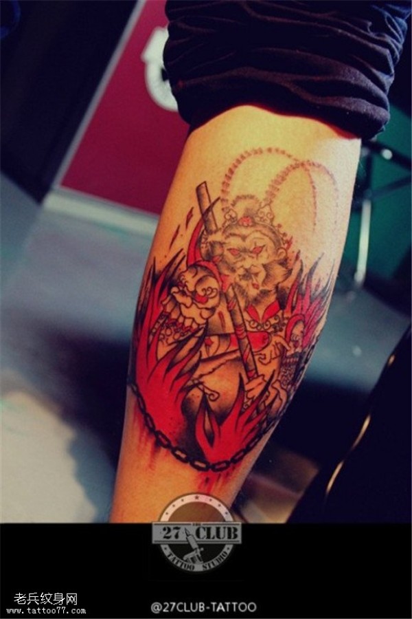 腿部彩色个性齐天大圣孙悟空纹身图案