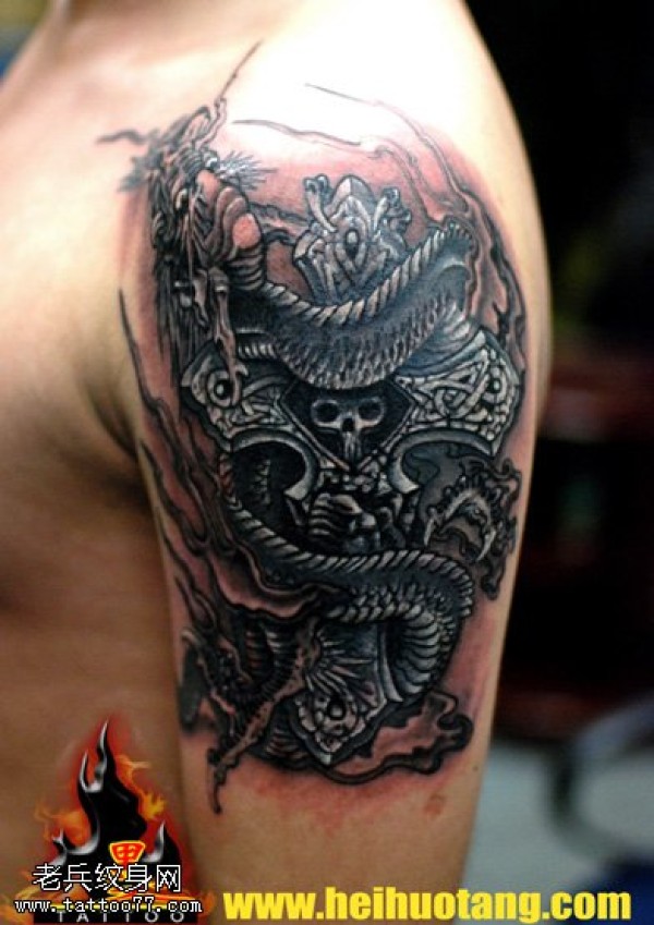 龙纹身手稿_一组老传统黑灰龙手稿纹身图案