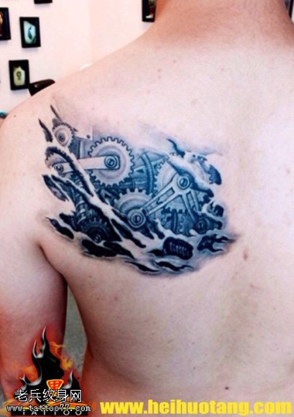 肩部外骨骼齿轮纹身图案