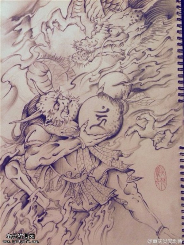 龙纹身手稿_一组老传统黑灰龙手稿纹身图案
