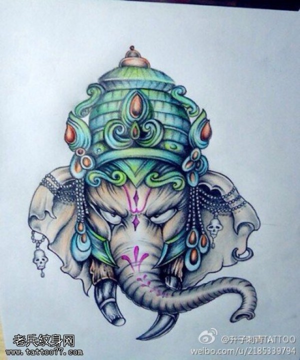 彩色宗教象神纹身图片