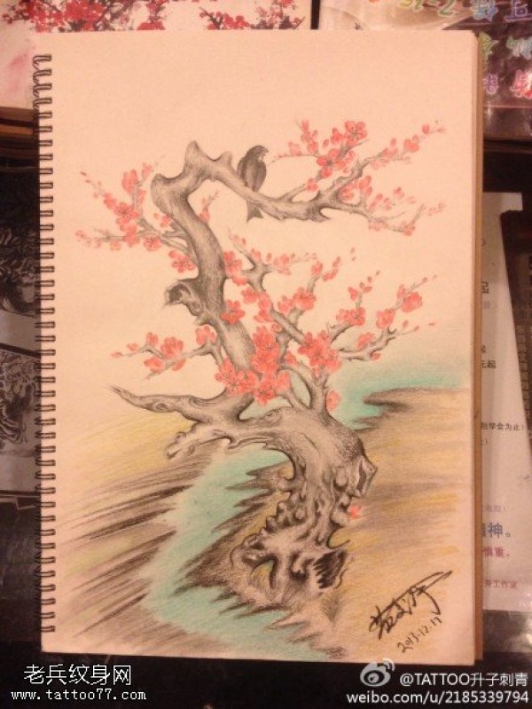 梅花纹身手稿图案