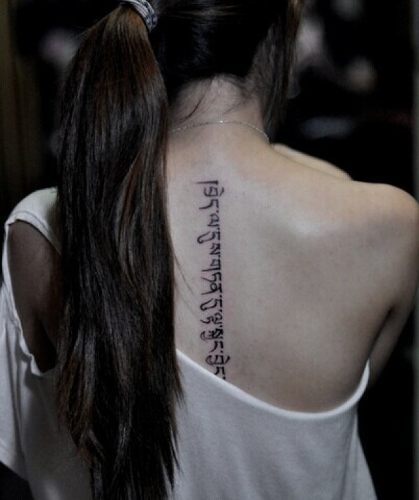洋气美眉的背部梵文纹身