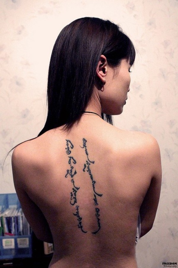 背部漂亮的梵文纹身