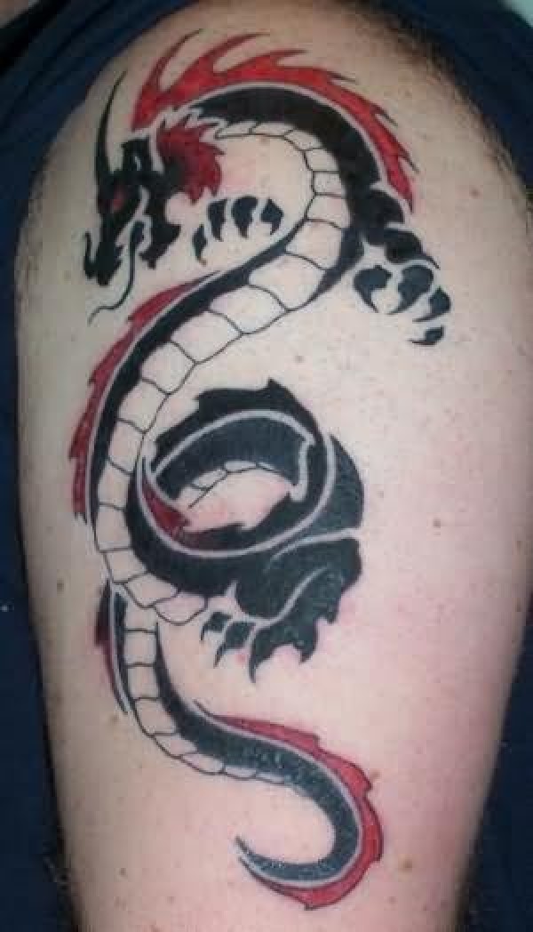 火红色的龙纹身