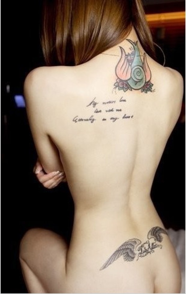 性感美女后背的英文纹身图图片