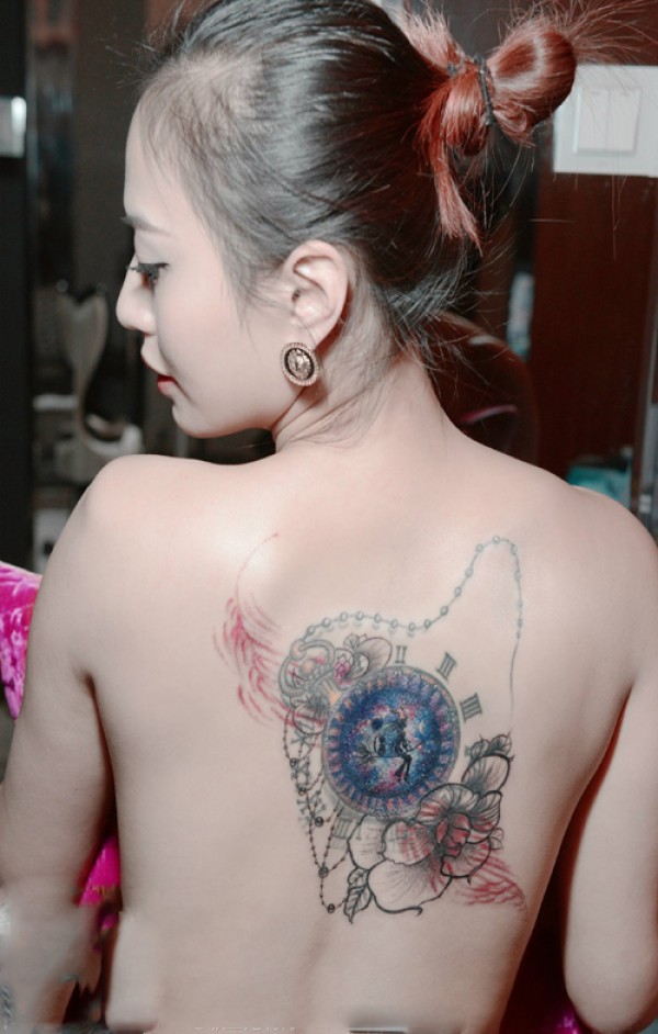性感女生满背创意文身作品