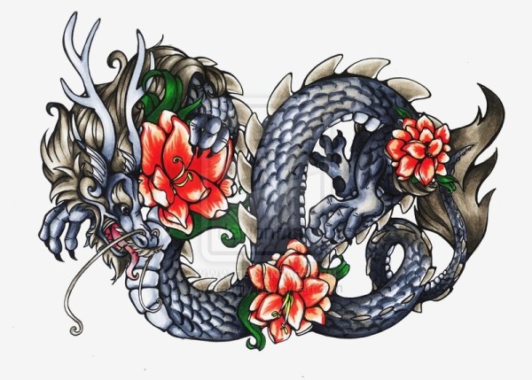 龙纹身手稿_一组老传统黑灰龙手稿纹身图案